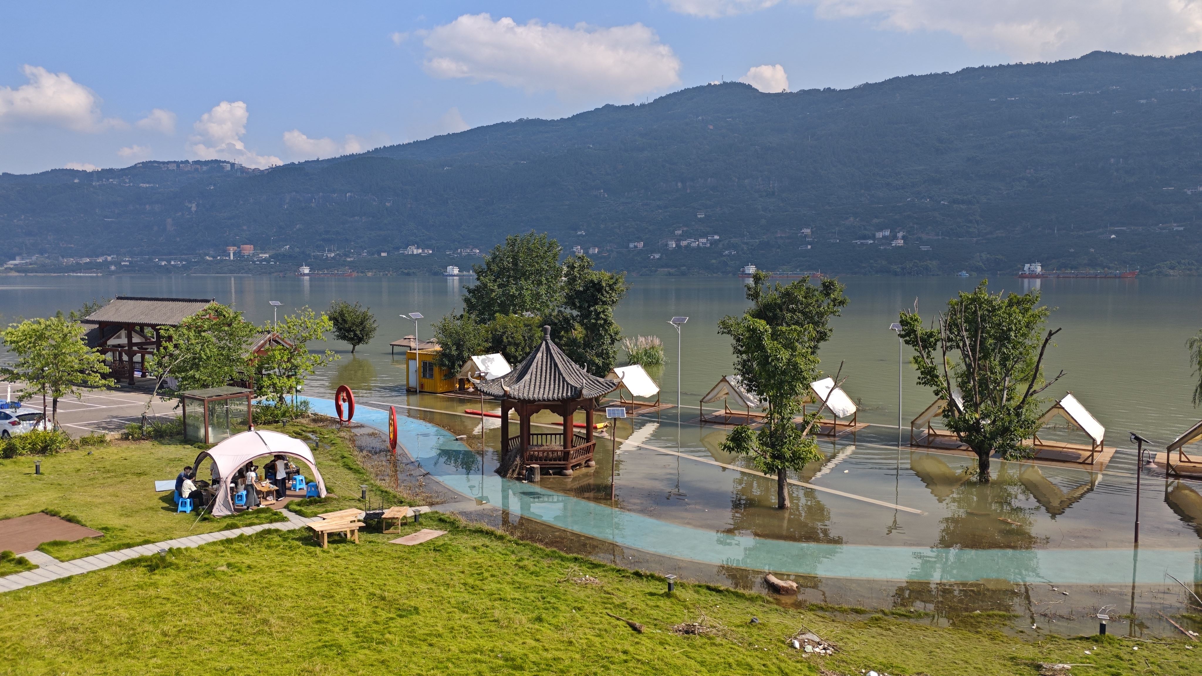 从昔日消落带的杂乱滩涂,到如今集主题乐园、露营基地、民宿集群于一体的滨江长廊。大周镇以生态筑基,让水中森林固土护岸,也成景引人;以特色农业赋能,让古红桔提质畅销成富民增收“金果果”;以乡村旅游落笔,一幅连接自然生态、人文资源与现代消费需求的振兴画卷正在徐徐展开。